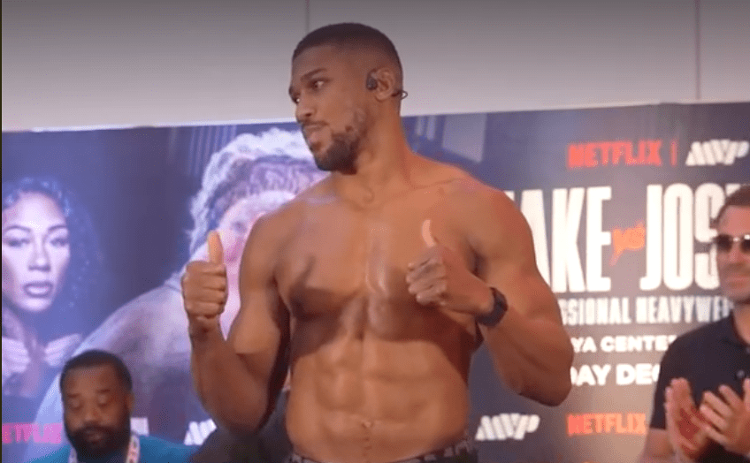 Lähde: Anthony Joshua weighs in 27 pounds heavier than Jake Paul for boxing match