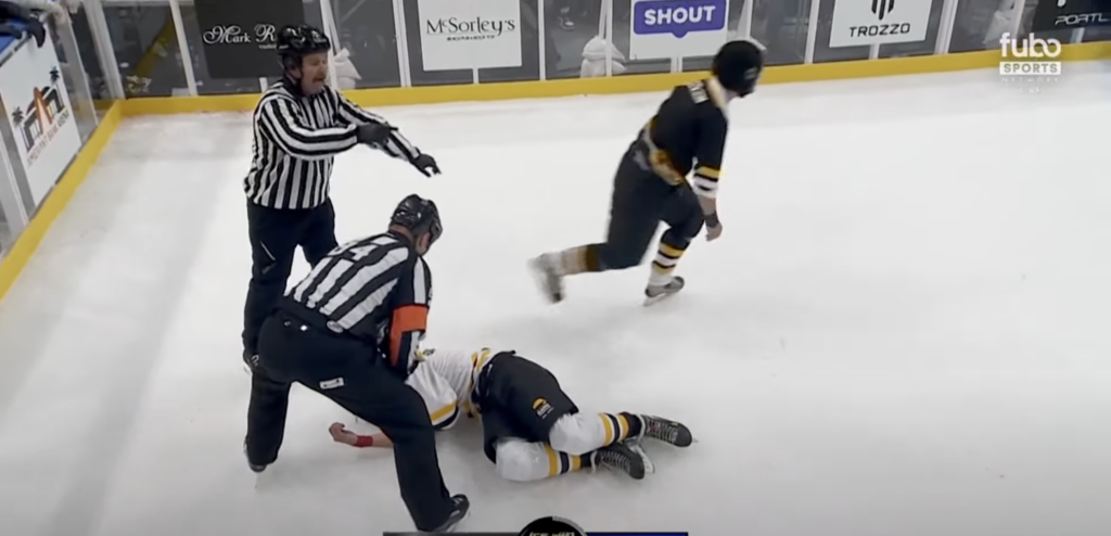 Lähde: Former UFC star knocks out hockey enforcer in wild bare-knuckle fight on ice