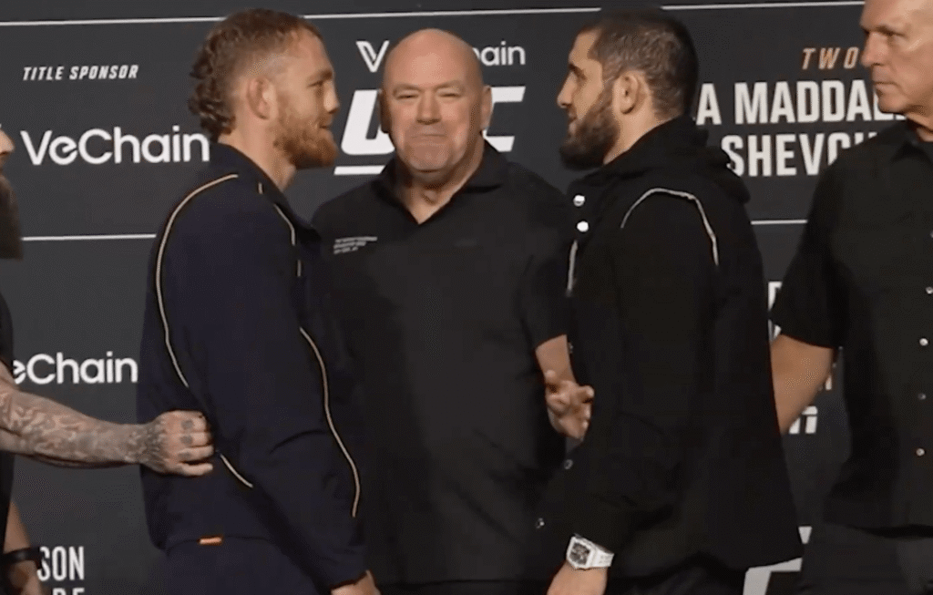 Välisarjan mestari Jack Della Maddalena ja entinen kevytsarjan mestari Islam Makhachev kohtasivat jännitteisessä katselmuksessa UFC 322 -tapahtumassa. Kamppailijoiden välinen jännite nousi esiin, kun he kieltäytyivät katkaisemasta katsekontaktiaan ennen lauantain ottelua.