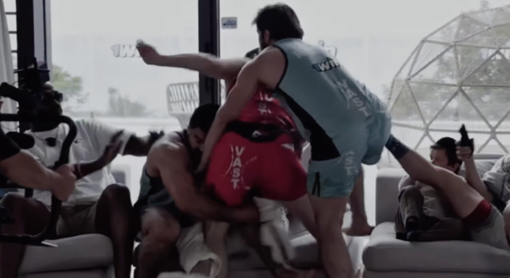 Tappelun riehaantuessa Masvidal huomasi Hasbullan olevan vaarassa jäädä taistelijoiden jalkoihin, joten hän asettui suojelemaan häntä. Romero nousi pian sohvalta auttamaan tilanteen rauhoittamisessa, ja Jon Jones puolestaan yritti hillitä toista kilpailijaa. Tilanne sai humoristisen käänteen, kun Jones naljaili Romerolle tämän yllättyneestä ilmeestä, kun he seurasivat tapahtumien kulkua. Näin Alf Reality -ohjelma sai yllättäen kansainvälistä huomiota, kun entiset UFC-tähdet näyttivät taitonsa paitsi kehässä, myös sen ulkopuolella.
